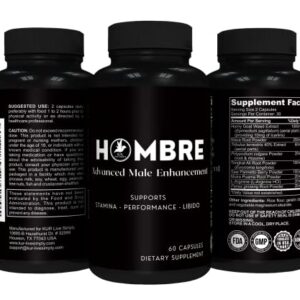 Hombre Male Enhancing Supplement – Enlargement Pills for Men Muscle Growth – Increase Size, Strength, Stamina – Male Enhancing Pill – Endurance, Performance, Energy Booster – 60 Capsules