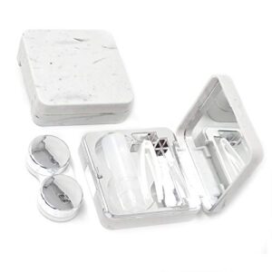 Honbay Fashion Marble Contact Lens Case Portable Contact Lens Box Kit with Mirror (Square) (Silver)