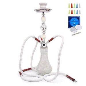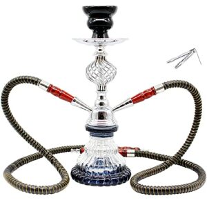 Hookah Set with everything 2 Hose- Portable Hookah Accessories Thickened Glass Vase Base with Ashtray Charcoal and Ceramic Bowl 12.2″