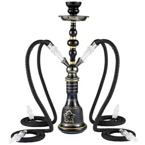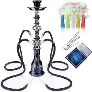 Hookah set with 3 hookah hose, 21″ complete hookah set with all hookah accessories including ceramic bowl, charcoal holder, glass vase and extra disposable hookah tips