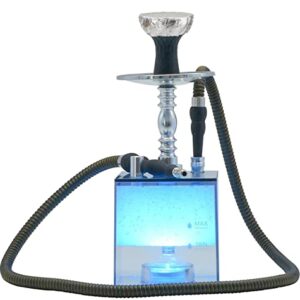 Hookah Set – Portable Glass Water Pipe with LED Lights – Bottle Style Water Vase with Holder, Tray, Mouthpiece – Lightweight and Compact, Mini Glass Pipe with 3 LED Settings (Blue)
