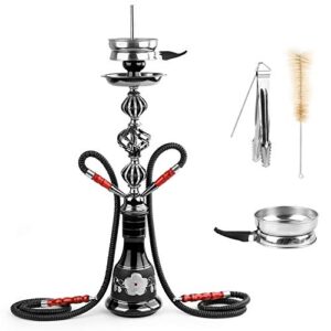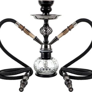 Hookah Set 2 Hose Hookah Shisha Set Complete Hookah Accessories Narguile Glass Vase, Ceramic Bowl and Coal Tongs Ashtray for Better Shisha Hookah Narguile Smoking (20″ Black)