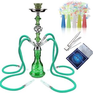 Hookah Set 4 Hose – GRENAOH 22″ Premium Hookah Shisha set with Glass Vase, Ceramic Bowl and Coal Tongs Ashtray (4-green)