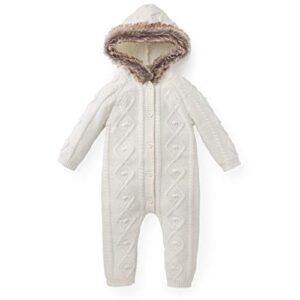 Hope & Henry Layette Cable Sweater Romper with Faux Fur Hood