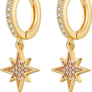 Hoop Earrings 14K Gold Plated Cubic Zirconia Moon Star Spike Lightning Evil Eye Dangle Huggie Earrings Jewelry for Women