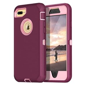 Hucasok for iPhone 8 Plus Case, iPhone 7 Plus Case Built-in Screen Protector Shockproof Rugged Full Body Protection Heavy Duty Dust/Drop Proof 3-Layer Durable Case for iPhone 8/7 Plus,Purple/Pink