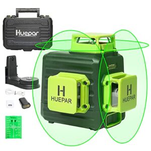 Huepar 3D Cross Line Self-leveling Laser Level 3 x 360 Green Beam Three-Plane Leveling and Alignment Laser Tool, Li-ion Battery with Type-C Charging Port & Hard Carry Case Included – B03CG Pro