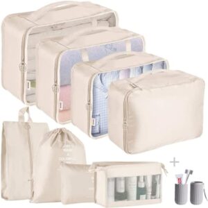 HYan Packing Cubes – 9 PCS Travel Luggage Organizers Set Waterproof Suitcase Organizer Bags Clothes Shoes Cosmetics Toiletries Storage Bags(Beige)