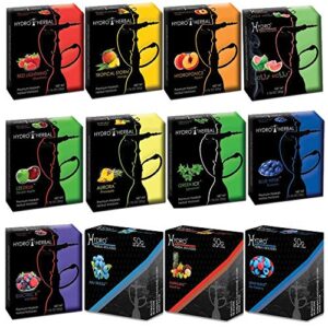 Hydro Herbal, Hookah Shisha Flavors Set, Includes 12 50g Packs, Tobacco & Nicotine Free Molasses, Fruit Flavor Mix with Premium Flavors and Scents, Made in USA, 600 Grams of Hookah Flavors