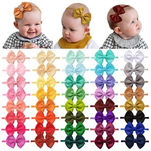 40 Pieces Baby Girls Headbands Nylon Hairband Grosgrain Ribbon Hair Bows Handmade Hair Accessories for Newborn Infant Toddler Kids