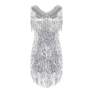inhzoy Womens Latin Dance Sleeveless Shiny Sequins Tassels Stage Performance Costume Dresses