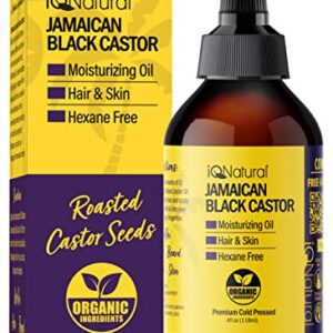 IQ Natural Jamaican Black Castor Oil for Hair Growth and Skin Conditioning, 100% Pure Cold Pressed, Scalp, Nail and Hair Oil – (Unscented) (4oz)