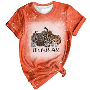 Its Fall Yall Graphic Shirts for Women Thanksgiving Short Sleeve Tees Pumpkin Print Tops Funny Halloween T Shirt Top