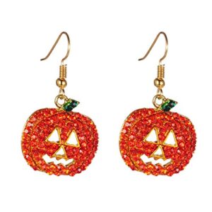 iWenSheng Halloween Pumpkin Earrings Red – Hypoallergenic Crystal Dangle Earring for Women Holiday Night Costume Jewelry Smiling Face Pumpkin Drop Earrings, Fun and Festive