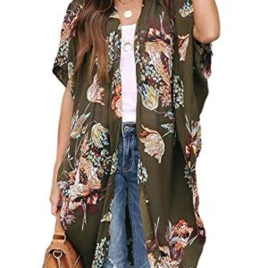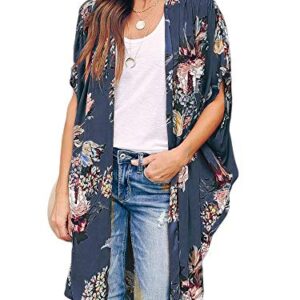 Ivay Womens Floral Kimono Duster Cardigans Short Sleeve Draped Oversized Beach Cover Up Cape