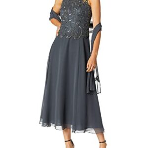 J Kara Women Petite Sleeveless Beaded Pop Over Dress with Scarf