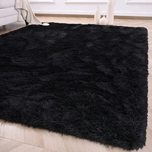 JAMFEEL Super Soft Fluffy Carpet Fuzzy Kids Bedroom Rug, 3 x 5 ft Black Shaggy Area Rugs for Livingroom Girls Dorm Room Christmas Decor Toddler Boy Children Plush Playmat