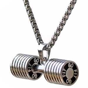 JAJAFOOK Men Stainless Steel Fitness Gym Dumbbell Weight Lifters Barbell Chain Pendant Necklace