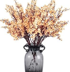 JAKY Global Babys Breath Fabric Cloth Artificial Flowers 6 Bundle European Fake Silk Plants Decor Wedding Party Decoration Bouquets Real Touch DIY Home Garden (Champagne)