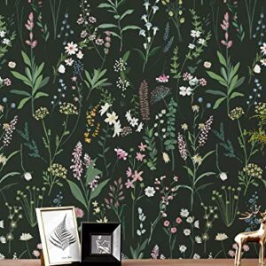 JiffDiff Floral Wallpaper Peel and Stick Dark Farm Floral Stick Wallpaper, Wildwood Wallpaper Self Adhesive Wallpaper for Home Bedroom Cabinets Thicken 17.71″x118″