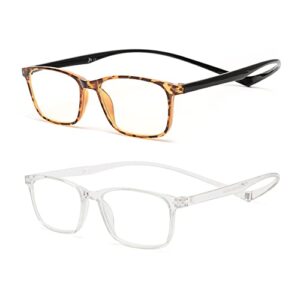 JM 2 Pack Magnetic Reading Glasses, Rectangle Blue Light Blocking Computer Readers Tortoise & Clear +2.25