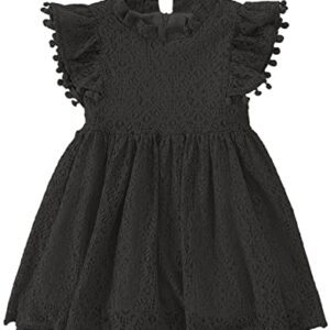 JNKLWPJS Toddler Girls Dress Elegant Lace Pom Pom Flutter Sleeve Baby Girl Party Dress
