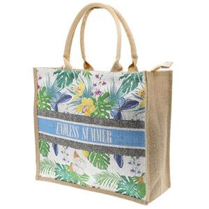 JNF Straw Beach Bag Jute Beach Tote Bags for Women Burlap Tote Bag with Zipper Reusable Grocery Shopping Bag with Handle