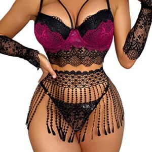Kaei&Shi Tassel Woven Skirt, Long Lace Gloves, Cami Padded Top, 4 Pieces Exotic Lingerie