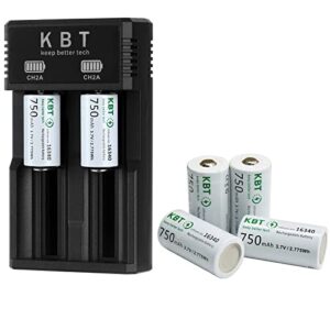 KBT Rechargeable 123A Battery Charger:2 Slot Smart Charger with 4pack 750mAh Lithium Battery for Arlo Camera VMC3030 VMK3200 VMS3230/3330/3430/3530 & Flashlight & Headlamp