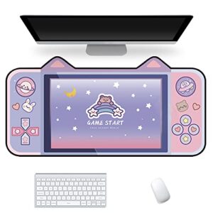 Kawaii Anime Mouse Mat,Cute Cartoon Cat Ear Extended Gaming Mouse Pad 31.5×15.7 inch,Large Non-Slip Rubber Base Mousepad Computer Laptop Desk Pad Waterproof for Work Game Office Home (Color2)