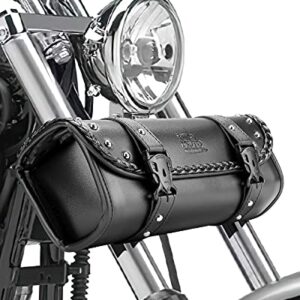 kemimoto Motorcycle Tool Bag, Motorcycle Fork Bag PU Leather Universal Saddlebag for Motorcycle Front Fork Handlebar Sissybar Storage Pouch Motorcycle Roll Bag-Black