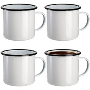 Kingrol 4 Pack Enamelware Mugs, Enamel Camping Mugs, 17 oz Drinking Glass with Handle, Black and White Rolled Rim Mug for Tea, Coffee, Cocoa