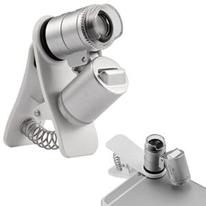KINGMAS 60X Clip-On Microscope Magnifier Lens with LED Lights Jeweler Loupe for iPhone, Samsung and More Mobile Phones (Universal)