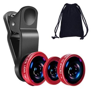 KINGMAS 3 in 1 Universal Fish Eye Lens + Wide-Angle Lens + Macro Clip Camera Lens Kit for iPad iPhone Samsung Android and Most Smartphones