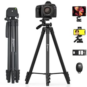 KINGJUE 60 Camera Phone Tripod Stand Compatible with Canon Nikon DSLR with Universal Tablet Phone Holder Remote Shutter Bubble Level and Carry Bag Max Load 6.6LB