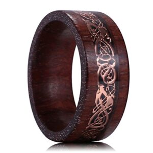 King Will NATURE 8mm Sandalwood Inlay Rose Gold Celtic Wedding Engagement Ring Band Comfort fit