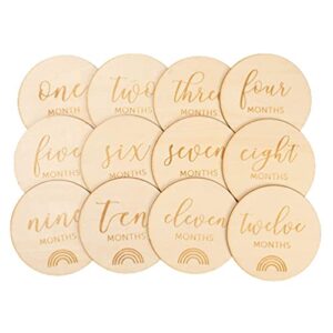 Kisangel 12pcs Wooden Monthly Cards Wooden Baby Milestone Sign Baby Milestone Discs Baby First Year Growth Photography