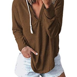 KIRUNDO Women’s Hoodies V Neck Long Sleeves Solid Color Sweatshirts Drawstring Casual Loose Pullover Fall Tops Blouses