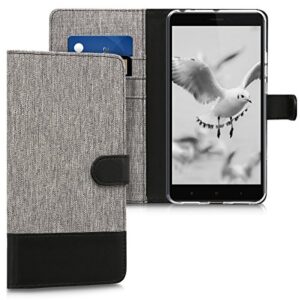 kwmobile Wallet Case Compatible with Xiaomi Mi Max 2 – Case Fabric and Faux Leather Phone Flip Cover – Grey/Black