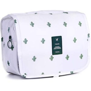 LAKIBOLE Toiletry Bag Multifunction Cosmetic Bag Portable Makeup Pouch Waterproof Travel Hanging Organizer Bag for Women Girls (Cactus&White)