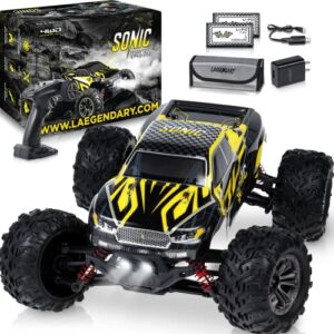 LAEGENDARY RC Cars – Off Road Remote Control Car for Adults & Kids, Waterproof All Terrain 4×4 Truck w/ 2 Batteries – 1:16 Scale, Brushed, Black – Yellow