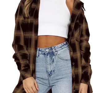 Lacozy Womens Buffalo Plaid Flannel Shirt Long Sleeve Collar Button Down Blouses Tops