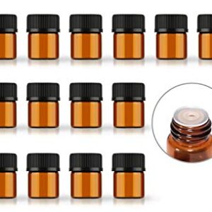 50Pack Small Glass Bottles with Caps and Pippettes Plastic Droppers Essential Oil Storage Accessories Mini Amber Bottles (1ML)