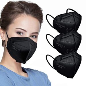 50pcs KN95 Face Mask Black 5 Layer Cup Dust Safety Masks Filter Efficiency≥95% Breathable Elastic Ear Loops Black Masks