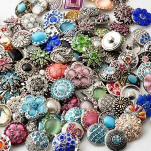 50pcs/lot Mix Many Rhinestone Styles Metal Charm 12mm Snap Button Bracelet for Women Rivca DIY Snap Button Jewelry(Multi-Color,one Size)