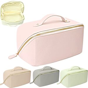 Large Capacity Travel Cosmetic Bag – Makeup Bag Opens Flat with Compartments for Easy Access – Leather Waterproof Portable Cosmetics Bag with Handle, Divider – Toiletry Make up Organizer Bag