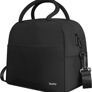 Large Lunch Bag Insulated Lunch Box for Women and Men, Light Durable Tote Bag with Adjustable Shoulder Strap for Office Work School Picnic Hiking Beach Fishing-(Black)