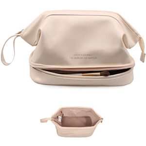 Large Makeup Bag for Purse Luxury Women Cosmetic Bags Designer Make Up Pouch for Toiletry Travel Organizer (Beige)
