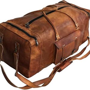 Large Leather 32 Inch Luggage Handmade Duffel Bag Carryall Weekender Travel Overnight Gym Sports Carry On Duffel Bag For Men And Women (32 inch)