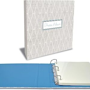 Large Padded Photo Album Magnetic Self-Stick 3 Ring Photo Album, 50 Double Sided Photo Mounting Sheets (100 Pages), by Better Office Products, 11.5″ x 12″ with 2.5″ Spine (Chic Gray)